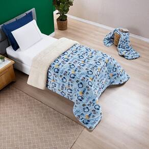 Coberdrom Fantasy, produto confeccionado em Tecido Sherpa e Manta Flannel Microfibra, sensação de Toque de Lã de Carneiro. Opção perfeita para decorar e se aquecer no inverno. Em estampas temáticas e divertidas que vão complementar a decoração do quarto do seu pequeno.