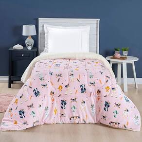 Coberdrom Cobertor Lutti Solteiro Quarto Cama Infantiil Sherpa Manta Toque Lã de Carneiro Foxy Raposinha Rosa - Única