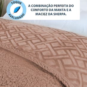Características: Tamanho: Queen - 220cm x 240cm Dupla Face - Pode ser utilizado de ambos os lados. Sherpa extra macia. Tecido flannel texturizado em alto relevo. Efeito Brushed: Muda de textura ao passar a mão. Tecido: 100% Poliéster