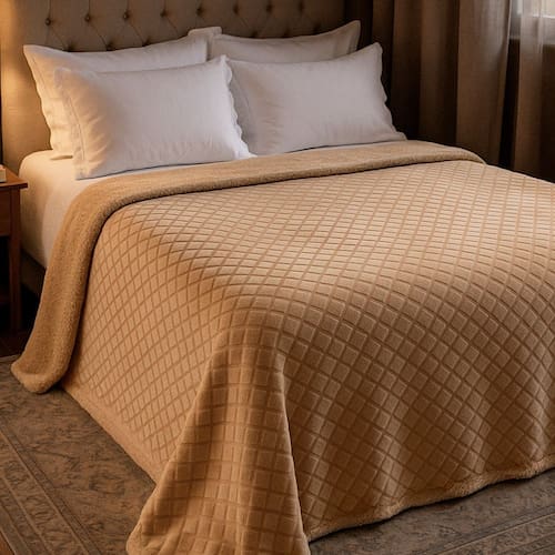 Coberdrom Edredom Manta Queen Aveludado com Sherpa Soft Dupla face - BF Colchões - Bege