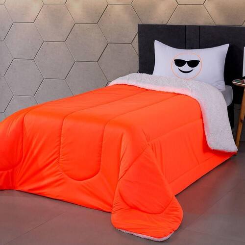 Coberdrom Edredom Solteiro Fluorescente Porta Bordado - Laranja