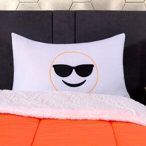 01 Porta Travesseiro: 70cm (Comprimento) X 50cm (Largura) (Emoji Bordado)