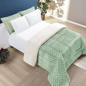 Coberdrom Estampado Sherpa E Flannel Petit Poá Queen 01 Peça Manta Alta 150g - Salvia