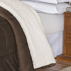 Coberdrom para cama QUEEN com 1 peça confeccionado em SHERPA e MANTA FLANNEL toque de Lã de Carneiro com alto padrão de qualidade, proporcionando conforto, aconchego e beleza para seu quarto.