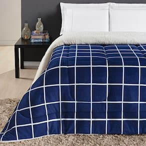 Coberdrom Sherpa E Flannel Austin King Manta 100g 01 Peça - Marinho O Coberdrom Austin é confeccionado com dois tecidos diferentes, de um lado ele possui o tecido sherpa no qual imita pele de carneiro, já do outro lado ele possui o tecido manta flannel de microfibra. Proporcionando assim uma noite quentinha, de muito conforto e aconchego. Produto comporto por:01 Coberdrom 2,60m x 2,40m Composição Tecidos: 100% PoliésterManta: 100 gramas/m