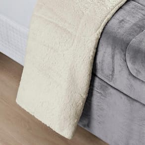 Coberdrom Sherpa E Flannel Everest Solteiro Manta Alta 150g 01 Peça - Cinza
