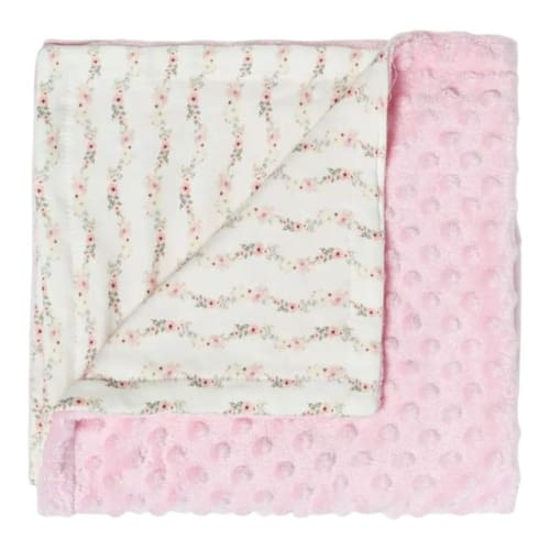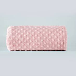 Características: De um lado em fleece com relevo poá, na cor Rosa. Outro lado em suedine estampado fundo off white.