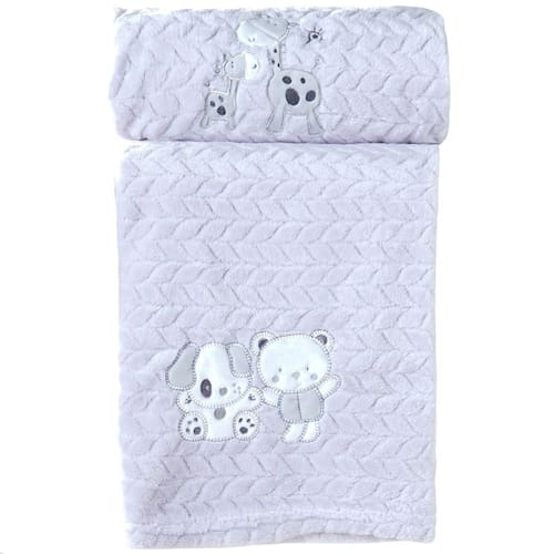 Cobertor Bebê Fluffy 110x90 com Aplique Bordado Gelo - Tecido Flannel Fleece 230g/m², Com Aplique Bordado, 100% Poliéster