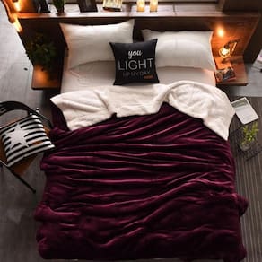 O que vem na embalagem: 1 Cobertor Casal Comum dupla face de 240 x 240 cm x 400gr m - Espessura média em linhas de cobertores. Frente: Cor bordô vinho - veludo molhado Costas: Cor off white - pele de carneiro sintético