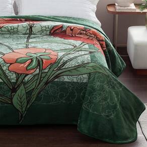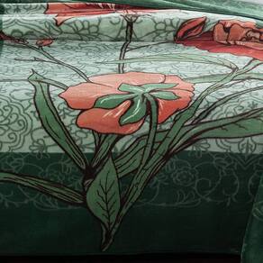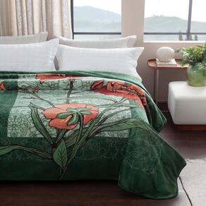 Estampa Nantes: Natureza Viva com Toques Artísticos A estampa do Cobertor Casal Kyor Plus Nantes Jolitex Ternille é ideal para quem busca renovar o quarto com uma explosão de cores naturais e design exclusivo. Com um fundo em tons de verde musgo e detalhes florais em laranja queimado, essa padronagem traz o frescor da natureza em uma composição rica e aconchegante.