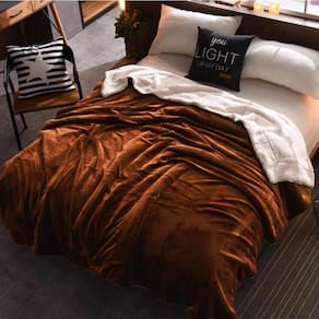 O que vem na embalagem: 1 Cobertor casal comum dupla face de 240 x 240 cm x 400gr m - Espessura média em linhas de cobertores. Frente: Cor ferrugem terracota - veludo molhado Costas: Cor off white - pele de carneiro sintético