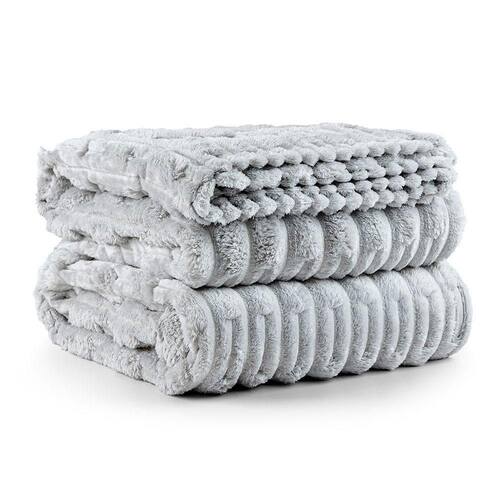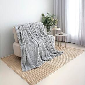 Cobertor Coberta Queen 2,40x2,20 Manta Ultrasoft Alto Relevo Extra Macia Platina Cinza - 100% Poliéster