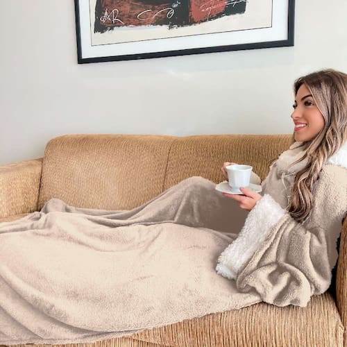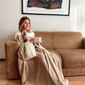 Cobertor com Manga Sherpa Quentinho Casa Dona - Bege