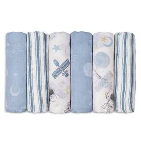 GLLQUEN BABY Cobertor Receiving para menino, algodão, musselina, cobertores, meninas, recém nascidos, respiráveis e macios, cobertores de bebê, panos, absorventes duplos, envoltório infantil - pacote com 6 (astronauta azul)