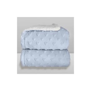Cobertor Donna Laço Bebê Plush com Sherpa Hearts - 90X110-AZUL BEBE