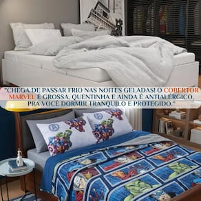 Cobertor Grosso Kids Marvel Antialégico Quentinho De Verdade Cor: MARVEL 2 Aqueça o sono das crianças com a força dos heróis da Marvel O Cobertor Grosso Kids Marvel Antialérgico é quentinho de verdade e perfeito para noites cheias de conforto e imaginação. Dê ao quarto das crianças o toque mágico que combina conforto, calor e os heróis favoritos O Cobertor Grosso Kids Marvel é a escolha perfeita para noites aconchegantes e cheias de estilo. Imagine seu pequeno a dormindo tranquilo, quentinho e protegido, cercado pelos heróis da Marvel que ele tanto ama. Esse cobertor não é apenas um item de cama, é uma forma de transformar o momento de descanso em algo divertido, seguro e cheio de carinho. É como um abraço macio dos super-heróis todas as noites Contém 1 peça 01 Cobertor 2,20m x 1,50m Composição: Manta Soft 1. Esse cobertor é realmente grosso e quentinho Sim Ele foi desenvolvido para proporcionar calor intenso e muito conforto. 2. O tecido é antialérgico Sim, é antialérgico, garantindo segurança e tranquilidade para crianças com pele sensível. 3. A estampa Marvel desbota com o tempo Não, ela é feita com alta qualidade para manter as cores vivas por muito tempo. 4. Pode ser em sofá ou viagens Sim Além da cama, é ótimo para passeios e sessões de filmes. 5. Esse cobertor é pesado para criança Não Apesar de grosso, ele é leve e fácil de manusear. Não deixe que o frio atrapalhe as noites de quem você mais ama. Garanta já o Cobertor Grosso Kids Marvel e dê ao seu filho a noites mais aconchegantes, divertidas e protegidas Marca: Não Informado