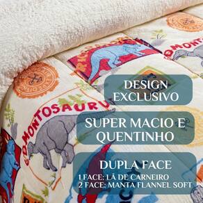 Cobertor Grosso Solteiro Estampado Mundo Kids Dupla Face Super Fofinho Cores: DINO