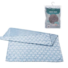 Leve o Cobertor Infantil Manta Bebê Sonho Corações Azul para onde quiser
