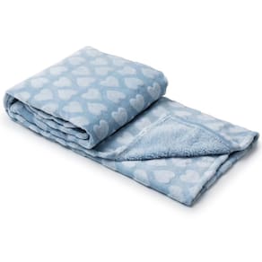 A manta consegue ser sem igual, beleza, maciez e qualidades que a diferenciam de todos os outros cobertores além de ser divertido e personalizado com a Cor Azul e corações em Branco.