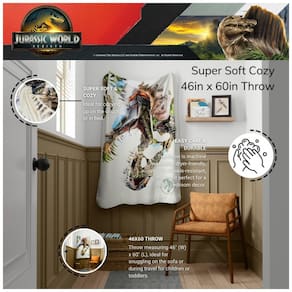 O cobertor infantil Jurassic World Rebirth da Franco é produzido em poliéster toque de seda, com textura macia e leve para uso em cama, sofá ou em viagens. A estampa apresenta personagens e dinossauros do universo Jurassic World, em composição colorida de tema infantil.
