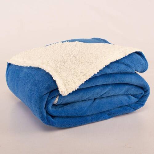 Cobertor Polaris Solteiro Sherpa Toque Lã De Carneiro e Manta Fleece 1 Peça - Azul Royal - Única
