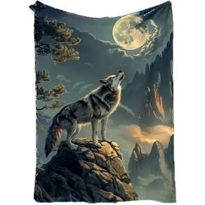 Cobertor SANMUU: flanela macia, noite escura, lua, floresta, lobo