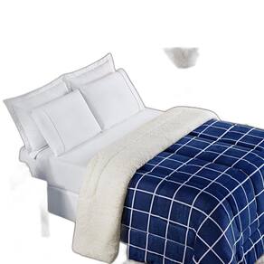 Cobertor De Solteiro Infantil Grosso Xadrez Dupla Face Antialergico AUSTIN Cores: Azul