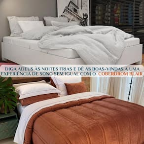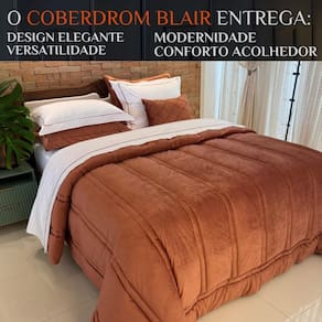 Cobertor Veludo Macio Super King Blair Quentinho para Frio Intenso Cores: TERRACOTA Cobertor Veludo Macio Super King Blair Quentinho para Frio Intenso Abraço de veludo em tamanho gigante para os dias mais frios do ano. O Cobertor Blair Super King é a escolha ideal para quem não abre mão de conforto, estilo e funcionalidade. Ele entrega tudo que seu quarto precisa para as noites geladas: Imagine um dia frio de verdade. A temperatura despenca, a casa fica gelada e tudo o que você mais quer é se esconder do mundo debaixo de algo quentinho... É aí que entra o Cobertor Blair Super King: ele não esquenta - ele te abraça. É como dormir envolvido num casulo de maciez. Um cobertor que te protege do frio lá fora e do aqui dentro. A cada noite, ele te lembra o que é ter um sono com qualidade, conforto e paz. Se você sente que sua cama está pedindo um upgrade - esse é o momento. Se você tem um quarto grande, e quer um cobertor à altura - você acaba de encontrar. Contém 1 peça 01 Coberdrom dupla face 3,15m x 2,70m 02 Porta Travesseiro 70cm x 50cm Composição: 1 FACE 100% Algodao / 2 FACE VELUDO 1. Esse cobertor serve mesmo para frio intenso Sim Ele foi desenvolvido com material de alta retenção térmica, ideal para noites rigorosas de inverno. 2. O toque do veludo é macio mesmo Extremamente macio O veludo premium tem toque aveludado que não pinica nem incomoda. 3. Pode ser em cama King normal Pode sim, ele é Super King, então fica ainda mais confortável e cobre com sobra. 4. É fácil de lavar Sim Pode lavar em máquina com ciclo delicado e secagem à sombra. Não desbota e não encolhe. 5. É indicado para quem tem rinite ou alergias Sim O cobertor é antialérgico, ajuda a proteger contra ácaros, fungos e poeiras. O cobertor certo faz toda a diferença na sua noite. Sinta o luxo e o conforto do Cobertor Super King Blair - quentinho, elegante e feito pra durar. Clique agora e leve esse carinho pra sua cama. As noites frias não vão esperar Marca: Não Informado