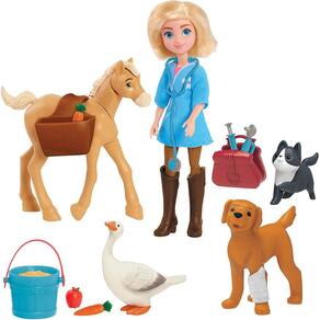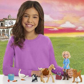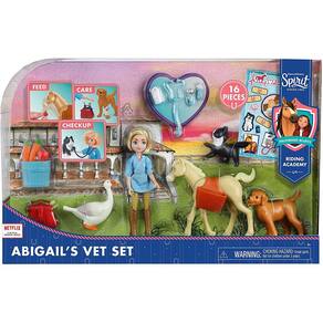 Agora, as crianças podem cuidar de seus amigos animais do conjunto de veterinário de Abigail, inspirado na série da Netflix, DreamWorks Spirit Free. Este jogador de nutrição inclui uma boneca Abigail de 5 polegadas, uma figura de potro de 4 polegadas, um filhote, um gato e uma figura de ganso. Coloque a bolsa veterinária de Abigail na mão e partiu para cuidar de seus amigos animais. Ela pode usar acessórios de estetoscópio, otoscópio e veterinário de seringa para dar um check-up a cada animal. Existe até um elenco que ela pode colocar na perna do filhote ou do potro para ajudá -los a melhorar. Use o balde de comida para dar um lanche a cada animal. O potro é até articulado e pode abaixar o pescoço para comer do balde. Use a sela do PoTer's Pack para armazenar acessórios veterinários da Abigail. O conjunto de veterinário de Abigail inclui uma boneca Abigail de 5 polegadas, uma figura de potro de 4 polegadas, um filhote, um gato, uma figura de ganso, um estetoscópio, otoscópio, acessório de seringa, adesivos, um acessório de bolsa veterinária, uma sela para armazenamento, um balde de comida. Idades mais de 3 anos