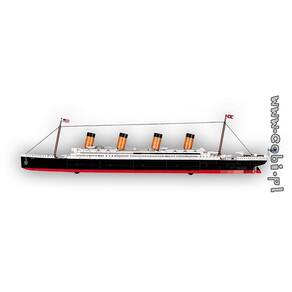 O modelo de tijolos do navio consiste em 722 blocos de construção cobi. Uma vez construído, ele tem até 64 cm de comprimento e 15 cm de altura. Inúmeros detalhes reproduzem a escala de 1:450 e reproduzem fielmente a forma e a forma de seu lendário protótipo. O conjunto inclui elementos móveis. Esta edição foi equipada com rodas giratórias montadas na parte inferior plana do navio. Com sua ajuda, o navio pode "flutuar" em superfícies planas, como o chão, tapete ou mesa. Graças a essa solução, o modelo de colecionador também se torna um brinquedo. Guindastes, parafusos e leme também podem ser movidos. O manual usa um sistema de ícones simples e pictogramas que facilmente guiam você através do processo de construção. O modelo de bloco do Titanic não requer colagem ou pintura. Todos os gráficos e inscrições são aplicados aos blocos na forma de estampas muito duráveis que não se desgastam ou desaparecem sob a influência do sol, água ou mesmo diversão muito intensa. Não foram usados adesivos no modelo. O conjunto é dedicado a pessoas com mais de 8 anos de idade. Certamente dará muita satisfação tanto para os fãs mais jovens de tijolos, quanto para os entusiastas adultos de história e estudos marítimos. O modelo do Titanic R.M.S certamente ficará espetacular tanto na mesa do colecionador quanto na sala de cada adolescente e criança.