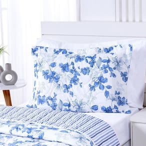 Cobre Leito 2 Peças Solteiro Percal 200 Fios Colori 100% Poliéster - Flores Azuis