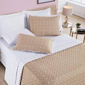 O Cobre leito Petit Poá possui tecido micro percal 200 fios com estampa clássica de bolinha, é totalmente matelado, dupla face, pode ser dos dois lados, acompanha porta travesseiros. Produto composto por: 01 Cobre leito 2,80m x 2,40m 02 Porta travesseiros 70cm x 50cm Composição: Tecido: Superior e Inferior 100% Poliéster Enchimento: 100% Poliéster Marca: Bia Enxovais | Estampa: Não se Aplica | Medidas: 01 Cobre leito 2,80m x 2,40m 02 Porta travesseiros 70cm x 50cm | Número de Peças: 03 Peças | Material: Poliéster | Cor Predominante: Caqui | Cama Indicada: King