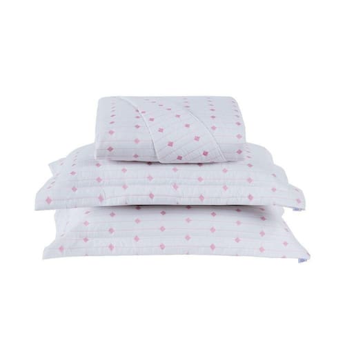 Cobre Leito 3 Peças King Percal 200 Fios Decor 100% Poliéster - Branco/pink