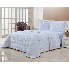 1 Cobre Leito Dupla Face Bordado 2,50m x 2,25m com viés em toda volta.