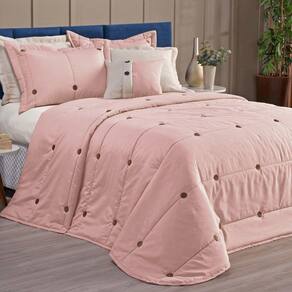 Kit Cobre Leito Queen bordado, confeccionado em tecido Micropercal 200 fios, almofada com refil de Silicone com alto padrão de qualidade, proporcionando conforto e sofisticação.