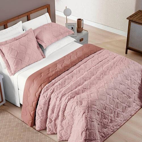 O design em alto relevo do Cobre Leito Harmonia adiciona um toque de elegância e estilo à sua decoração, criando uma atmosfera aconchegante e refinada. Cada detalhe é cuidadosamente trabalhado para criar um padrão de textura que não apenas encanta visualmente, mas também acrescenta dimensão ao seu ambiente.