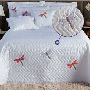 Você merece um quarto que seja um verdadeiro oásis de beleza e requinte, e nosso Cobre Leito Libélula da MR Enxovais é a escolha perfeita para alcançar esse nível de sofisticação. Apresentando bordados impressionantes de libélulas que se harmonizam perfeitamente com um matelado em zig-zag, este conjunto traz um toque de charme inigualável à sua cama. Os detalhes são simplesmente deslumbrantes, com bordados finamente elaborados, além de um acabamento especial com debrum que garante que sua decoração seja verdadeiramente especial.