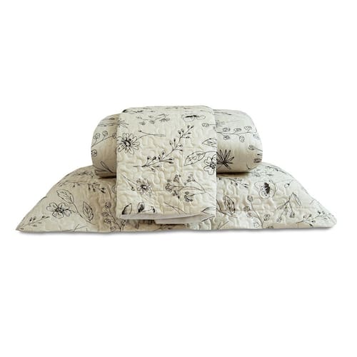 Cobre Leito Casal Padrão Bouti Basic Estampado 180 Fios 3 Peças - Minimal Floral - Única