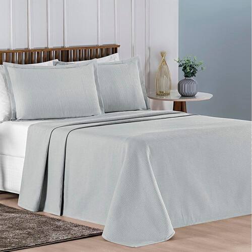 Cobre Leito Casal Padrão Charm Piquet 100% Algodão 3 Peças - Cinza