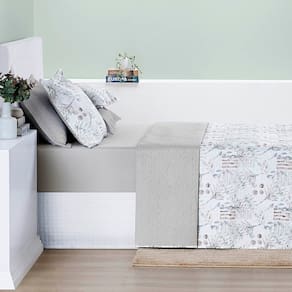 A Coleção Cotton Select vem proporcionar charme e elegância para seu quarto é ideal para compor uma decoração de quarto romântica e delicada. O Cobre leito é dupla face, sendo uma face estampada e a outra lisa, junto de porta travesseiros estampados. Todos os itens são fabricados com tecido 200 fios 80% algodão / 20% poliéster que recebe um tratamento especial para ser macio ao toque.