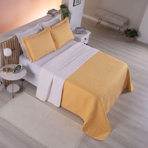 Cobre Leito Casal Padrão Cristal Percal 200 Fios Bordado 3 Peças - Amarelo - Única