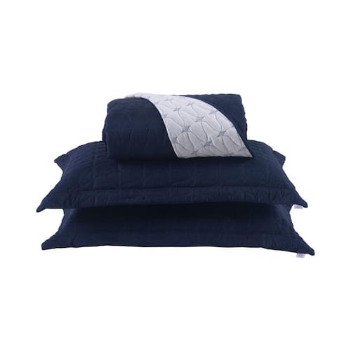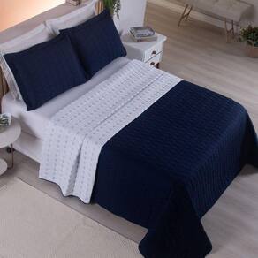 Cobre Leito Casal Padrão Cristal Percal 200 Fios Bordado 3 Peças - Azul Marinho - Única