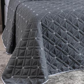 Cobre Leito Casal Padrão Ideale 200 Fios Bordado 6 Peças - Grafite - Única