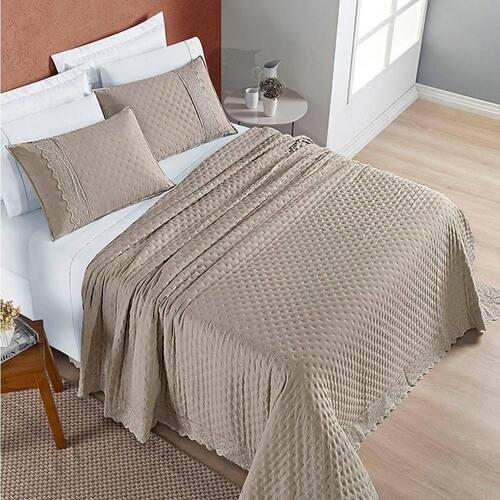 Cobre Leito Casal Padrão Nobless 200 Fios 3 Peças - Taupe