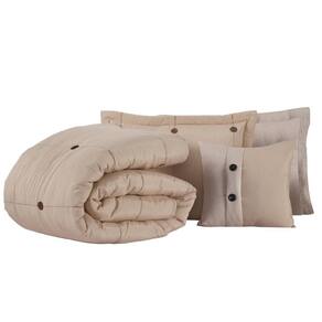 Cobre Leito Casal Queen 7 peças Botão Colcha de Casal Avelã