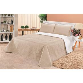 Cobre Leito Clara Casal Padrão Dupla Face 03 Peças - Branco/KáquiContém na Embalagem: 01?Cobre Leito?2,40m x 2,20m02 Porta Travesseiros 70cm x 50cm Acabamento do Cobre Leito em Viés Composição:Tecido Superior e Inferior: Microfibra 100% poliéster Manta: 100% Poliéster Marca: Laura Enxovais Ean: 7898647350540
