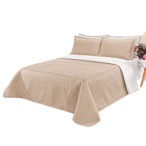 Seu quarto mais lindo, mais aconchegante, e seu sono preservado cobre leito de altíssima qualidade que protege, dá vida e decora sua cama cobre leito com acabamento premium, confeccionado com tecido superior e inferior 100% poliéster, e manta 100% poliéster. Agora a qualidade e o conforto das suas noites estão garantidas. Economia, cobre leito 2 em 1 este é um produto dupla-face, ou seja, você tem dois produtos pelo preço de um. Sendo possível usar dos dois lados, você pode variar as cores e nunca enjoar do visual diferencial do nosso cobre leito com o matelado formando desenhos de caminho sem fim, e um tecido liso, seu ambiente, além de conforto, vai ganhar um ar mais leve e elegante. A costura tem um acabamento fino, seguindo rigoroso padrão de qualidade caimento perfeito a sua cama e acompanha para você na compra do seu cobre-leito, você leva um belíssimo porta travesseiro de acordo com a cor do cobre leito.