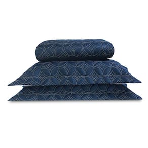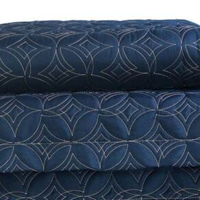 Cobre Leito Colcha Queen 3 Peças Bordado Luxury Azul Marinho