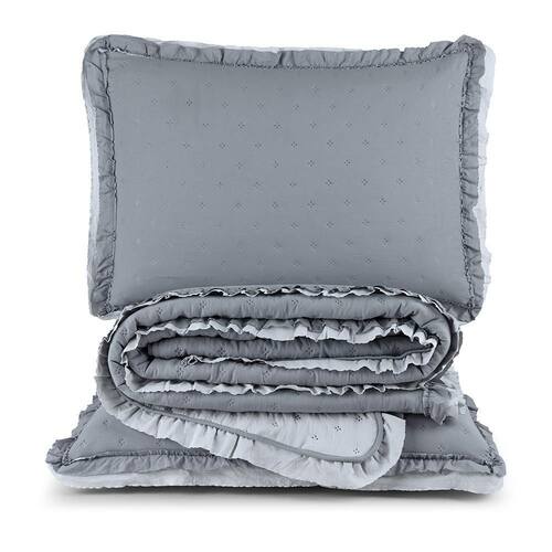 Cobre Leito Colcha Queen Luar 3 Peças Cinza - 100% Poliéster Cobre-leito Luar- Conforto e Charme em Cada Detalhe