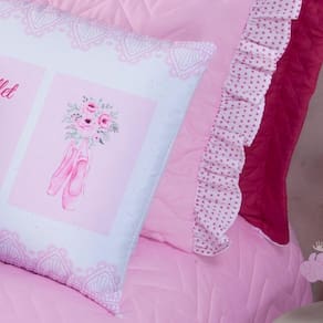 Confira suas Características: - Produto confeccionado em tecido microfibra - Cobre leito e portas travesseiros matelados - Produto forrado com tecido microfibra na cor branca - Detalhes do produto com babado liso e estampado póa de estrelas - Fronha e almofada decorativa com estampa excluvisa digital, com fechamento em zíper - Enchimento somente na almofada - Acabamentos do cobre leito e portas travesseiros em bainha Produto Composto por: 1 Cobre Leito.....2,50M X 2,45M 2 Portas Travesseiros...70Cm X50Cm 2 Fronhas Estampadas...65Cm X 45Cm 1 Capa De Almofada....40Cm X 40Cm 1 Refil De Almofada...40Cm X 40Cm Composicao Tecido 100% Poliester Enchimento 100% Poliester Marca: AQUARELA ENXOVAIS | Estampa: Não se Aplica | Medidas: 1 Cobre Leito.....2,50M X 2,45M2 Portas Travesseiros...70Cm X50Cm2 Fronhas Estampadas...65Cm X 45Cm1 Capa De Almofada....40Cm X 40Cm1 Refil De Almofada...40Cm X 40Cm | Número de Peças: 07 Peças | Material: Poliéster | Cor Predominante: Rosa | Cama Indicada: Queen